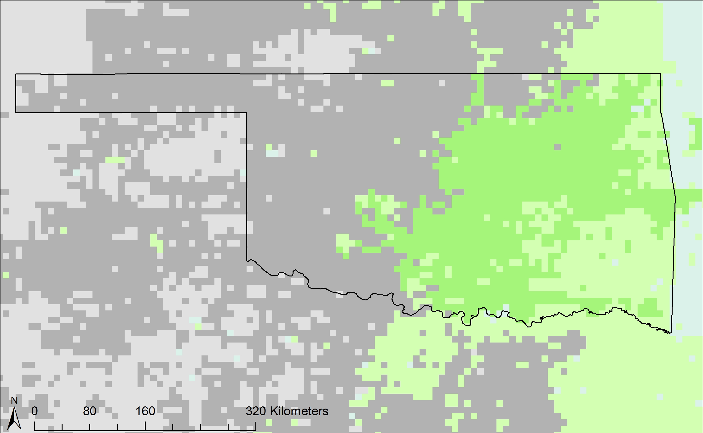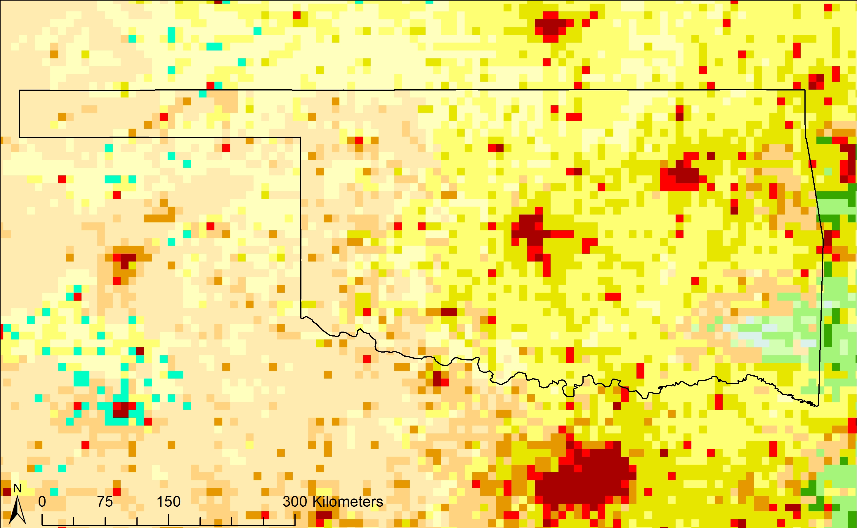 The effect of humans on the landscape in Oklahoma: Where is the water? And the effect of spatial data resolution