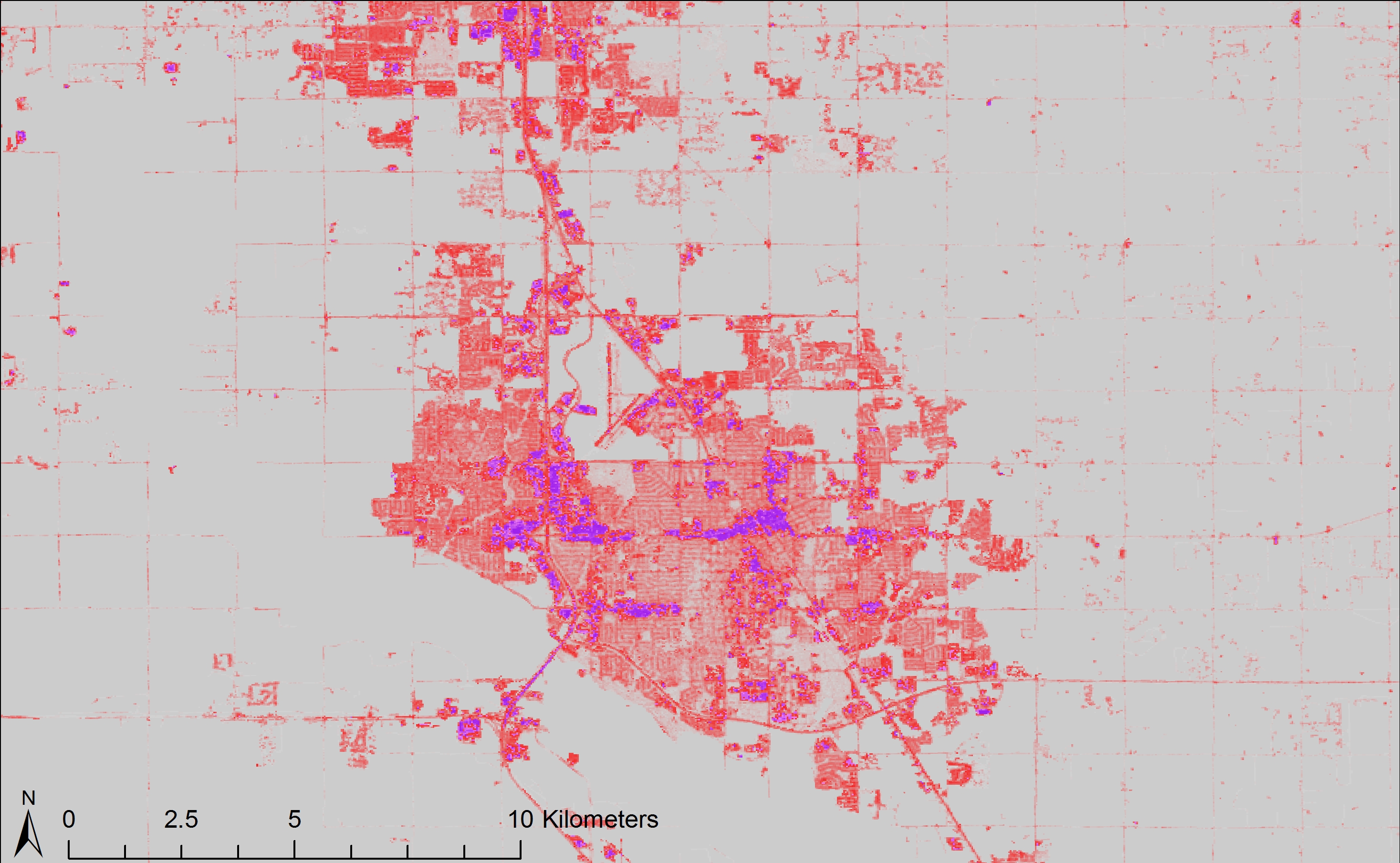 Figure 7 (detail): A zoom in to Norman (OK) for the 30m impervious data reveals the spatial detail of human influence.
