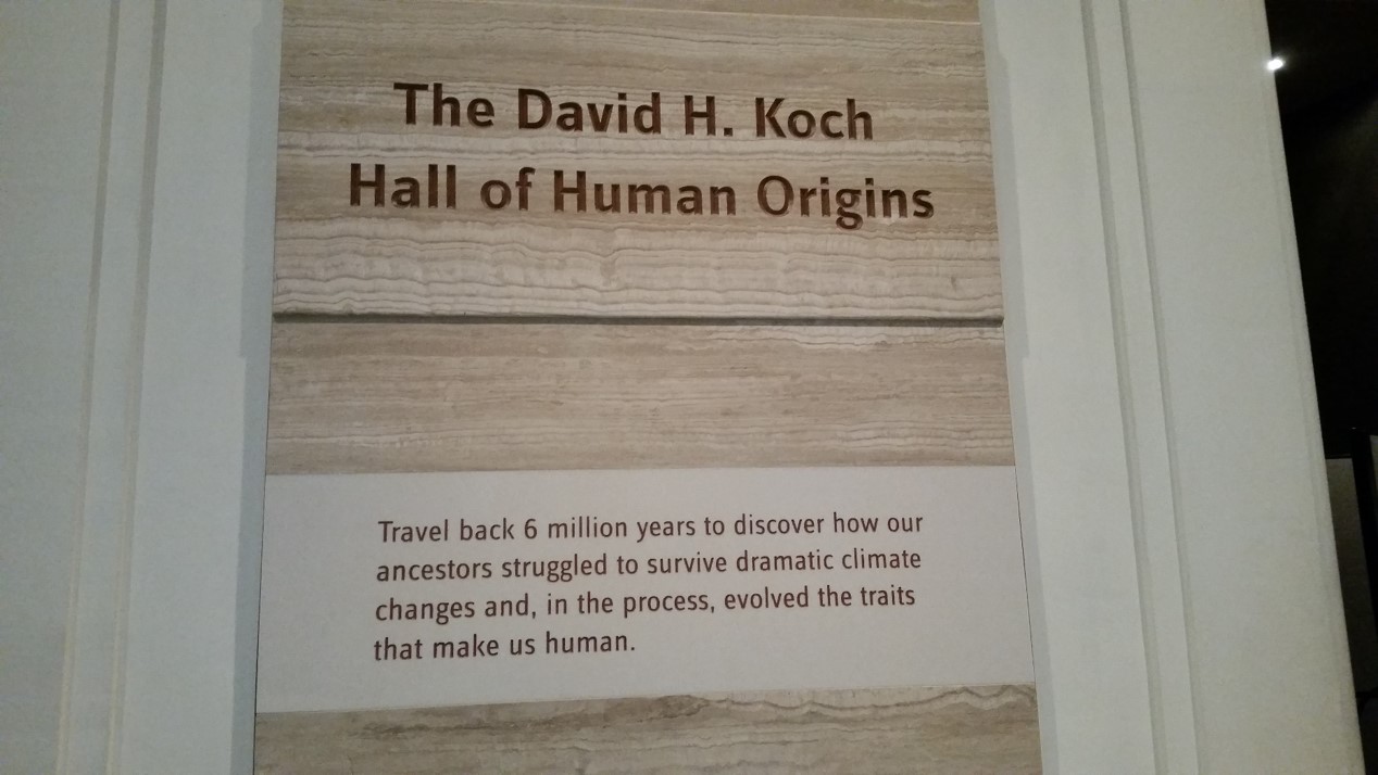 In late May this year, two related attractions drew me to the Smithsonian National Museum of Natural History in D.C.  One was an ambitious-sounding lecture by biologist and pioneer of “evolutionary religious studies,” David Sloan Wilson. The other was the Smithsonian’s Hall of Human Origins, funded by climate-denial financier David H. Koch and denounced by some climate hawks as misleading and “deeply flawed.”