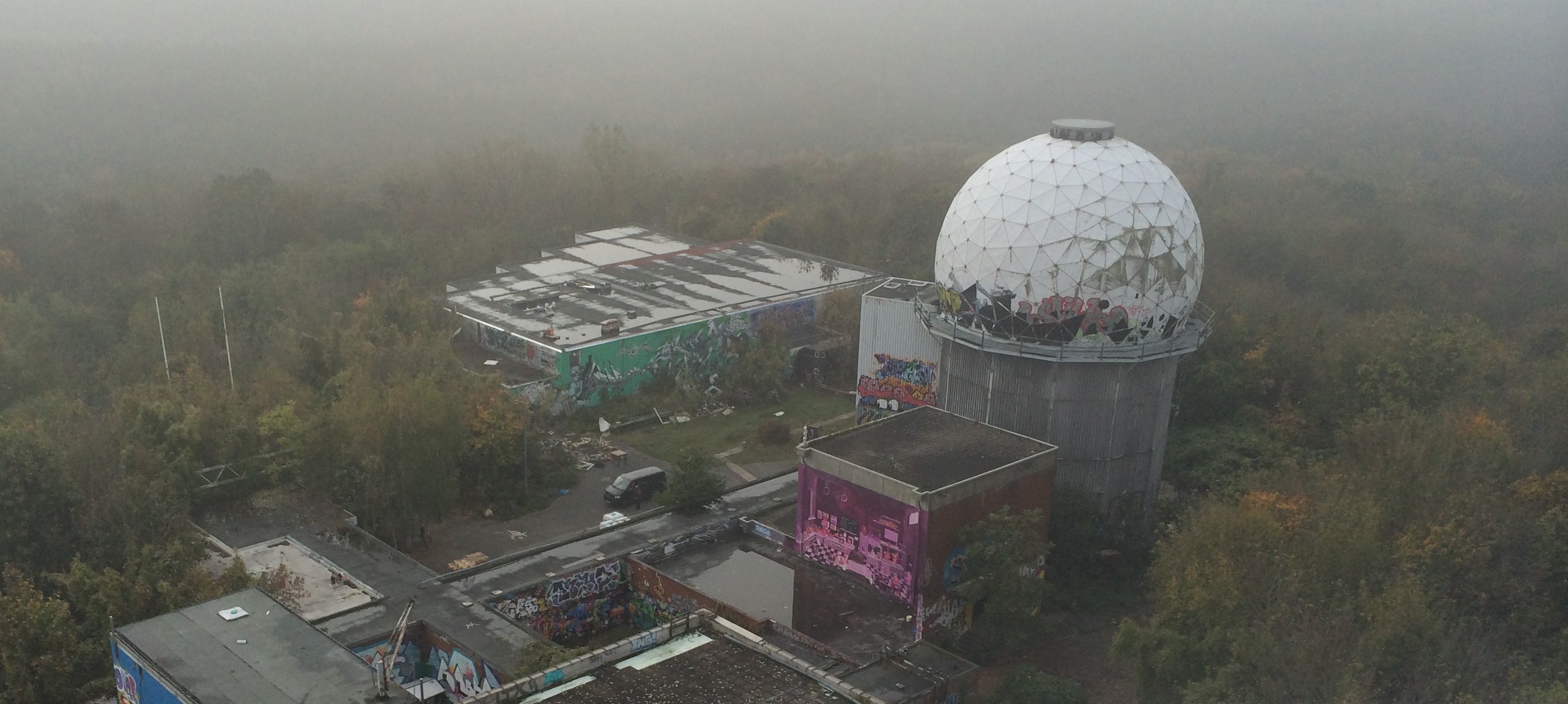 The day before we met in the HKW, our hosts took us to the highest hill in Berlin, the Teufelsberg, or Devil’s tower. It was entirely man-made and covered in forest. The debris of war-time bombing raids had been trucked here to cover a Nazi military training camp that had been too difficult to demolish, and in turn the US National Security Agency built a now derelict listening station on its top. The surrounding woodlands were reclaiming their space, and the buildings were being consumed by fresh green growth. And yet humans were not absent, as the space was also used by young artists who had chosen an alternative way of living. Their brazen art covered every surface of the dilapidated complex. It was brilliant. It was the Anthropocene in so many ways.