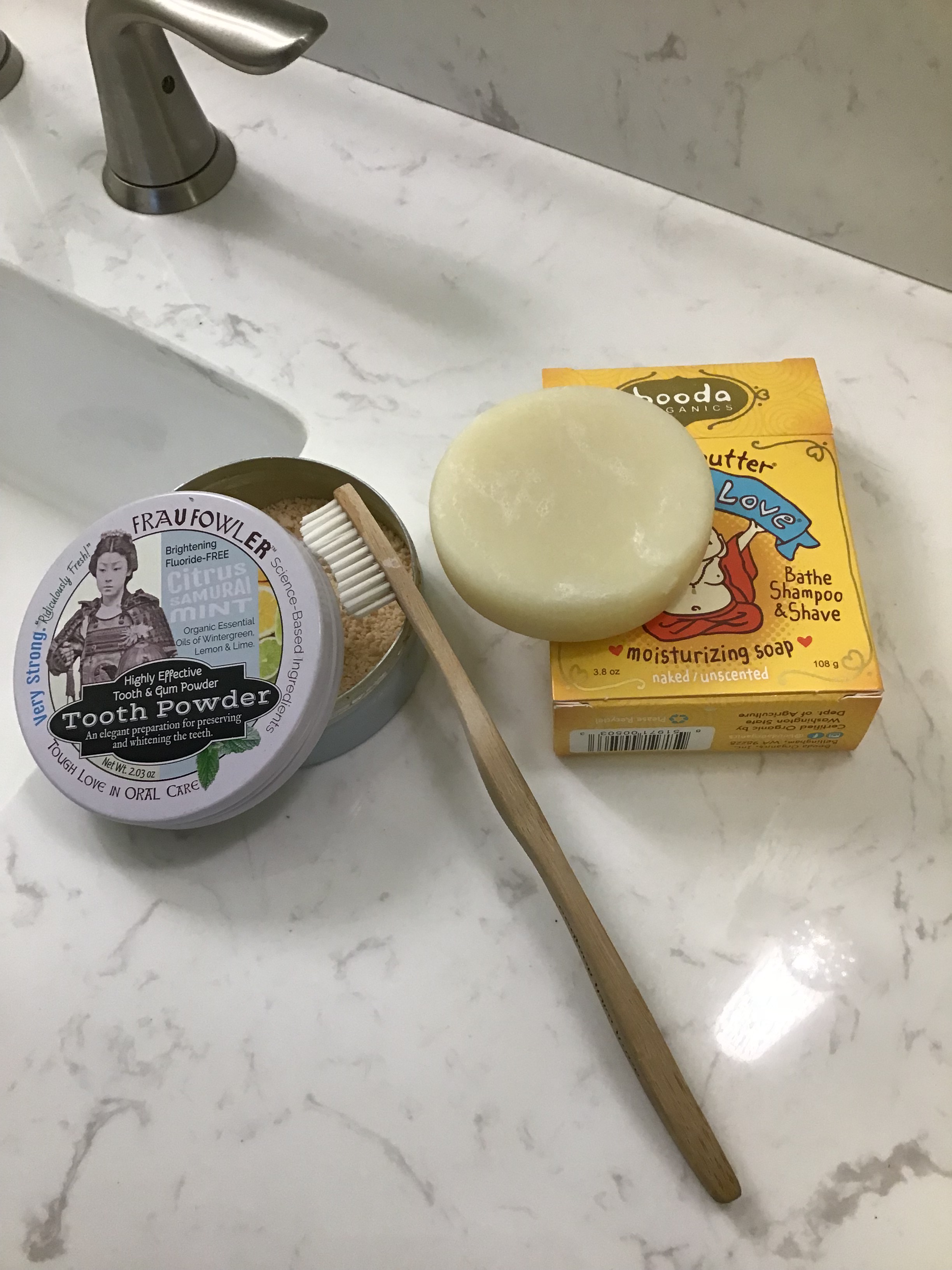 (Julia notes, though, that the choice between canvas and plastic bags is trickier than it first appears. She mentioned an NPR story that reported that “plastic bags are better for the environment overall than a canvas bag unless you use the canvas bag over 100 times.” This has given her pause to consider things more carefully: “Interesting to think about the complicatedness of this issue. Being plastic free for health and environmental reasons may make you seem like a hypocrite sometimes. It requires constant attention to news sources and continual research that just isn’t possible all the time, so having a certain set of basic materials that you really use a lot is the easiest way to feel some impact.”)