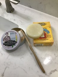 Back in the States, she spent a good bit of time shopping for everyday items that were plastic-free and did not come in plastic containers. “I picked up deodorant in a compostable sleeve, a wooden hairbrush with wooden bristles, tooth powder in a tin container, and a small bamboo cutting board. I bought perfume and the lip balm that both come in small tins.” For food storage, she found waxed paper sandwich bags that bend close and are reusable. She also purchased a product called Beeswrap that works a like plastic wrap, but can be washed and reused many times. Sometimes, however, she had to make compromises. The glass containers for the refrigerator have plastic lids. “Toothbrushes were hardest to find. I researched online for the best plastic-free toothbrush. The one I settled on has a bamboo handle and nylon bristles.” She didn’t always have to buy new plastic-free items. “You can share with friends or simply do without. A friend who is also going plastic free gave me a canvas bag for shopping for bulk items.”